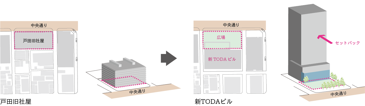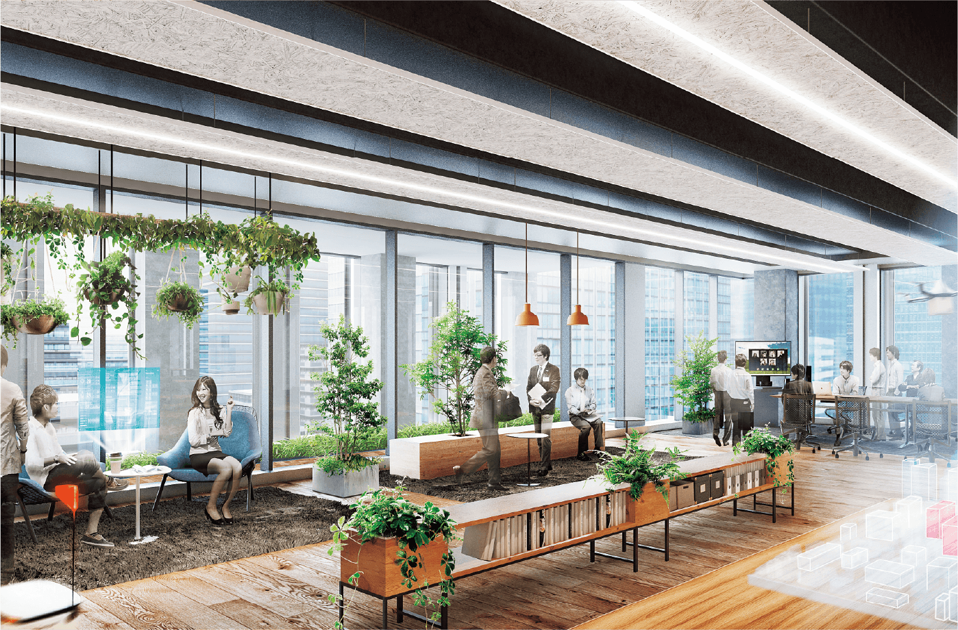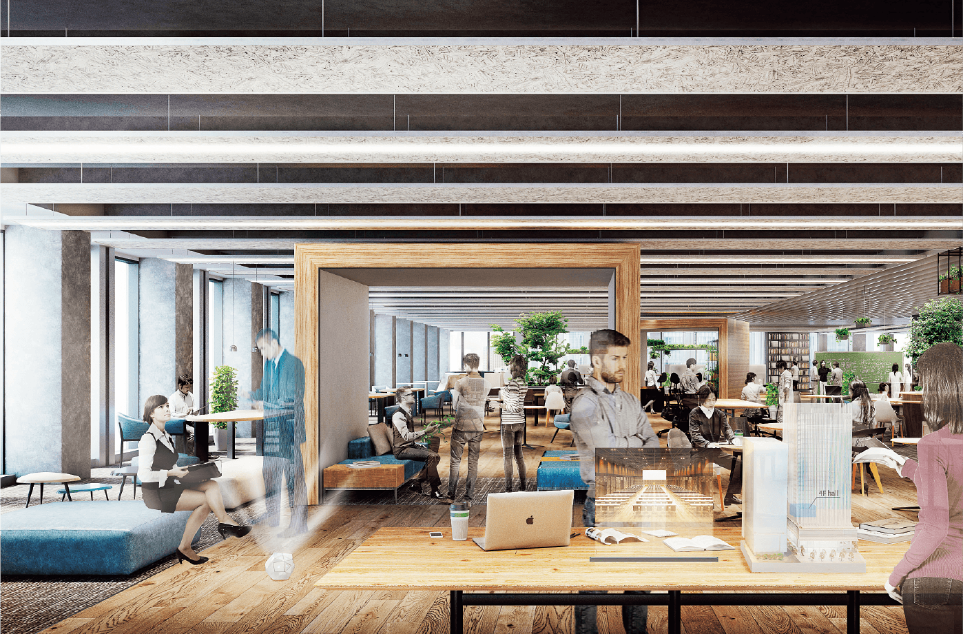これからのオフィスには、働く人のウェルネス向上、知的生産性向上に寄与する高い居住性・安心安全な空間が求められ、今まで以上に、働く人が活性化でき、よりクリエイティブな発想が生まれやすいオフィス環境の整備が必要です。そうすることで、より優秀な人材・多様な人材の確保ができると考えます。「新TODA ビル」は、人と共に、時間と共に、継続的に進化していくオフィスを目指しています。