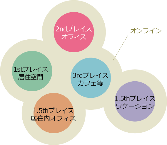 - カフェやシェアオフィス等で場所に縛られない働き方の推進