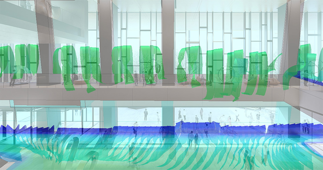 ロビーなどの大空間は天井高が高いため、空調効率が悪く、省エネとの両立が非常に難しいエリアでした。その為、気流シミュレーションを効果的に活用し、空間の快適性と空調能力とのバランスについて事細かに検証を行いました。その結果、快適性を損なうことなく省エネ性に配慮した空調システムの実現を可能にしました。