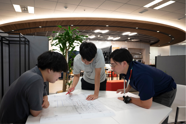 意匠、構造、環境設備、BIMなど、それぞれの専門部署に本配属され、日々の精進を重ね、実務に慣れていきます。