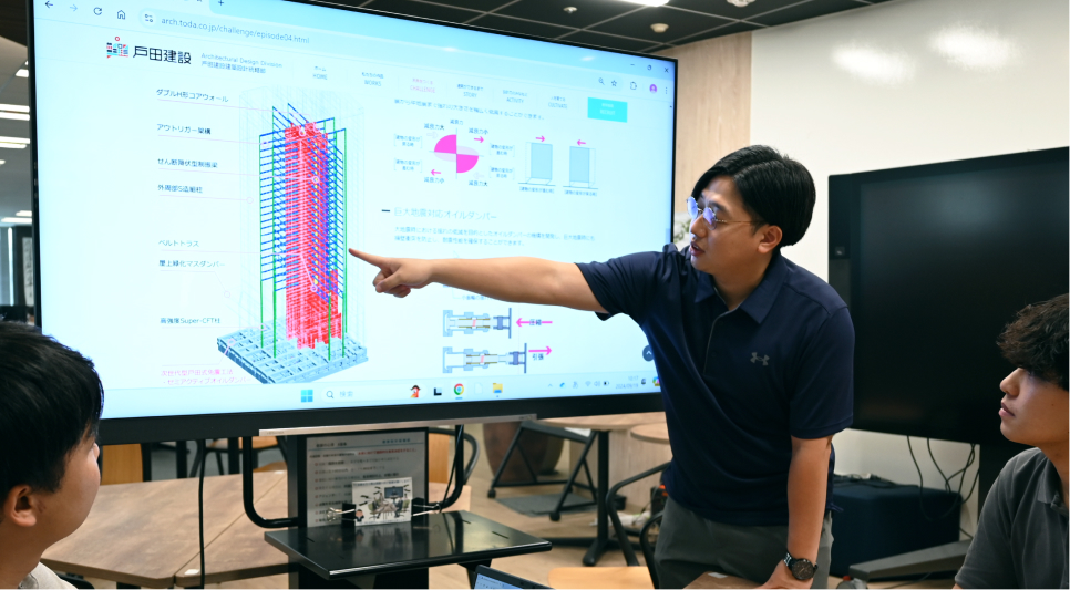 建築設計統轄部配属予定の社員でも、戸田建設では建築の基本である「現場」のほか「積算」「施工図」も学びます。