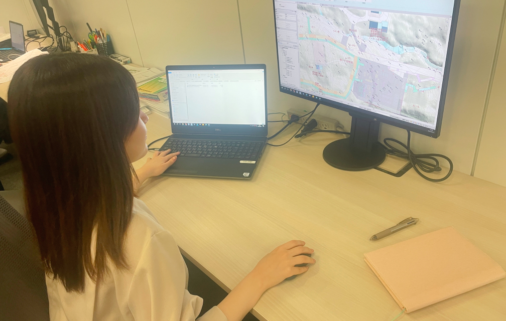 入社して半年はゼネコン設計部ならではの研修として施工管理に携わりました。鉄筋コンクリート造の研修施設と鉄骨造の超高層オフィスビル、東京支店の2つの現場にお世話になりました。職人さんとスケジュール調整を行いながら工事写真を撮ってまわり、携わる人の多さに圧倒される毎日でした。分からないことばかりでしたが、経験豊富な方々に気軽に相談できる環境の中で現場を知ることができたのは、設計の業務にも活きる経験になったと感じています。建築は団体戦。まさにそのことを実感する1年でした。