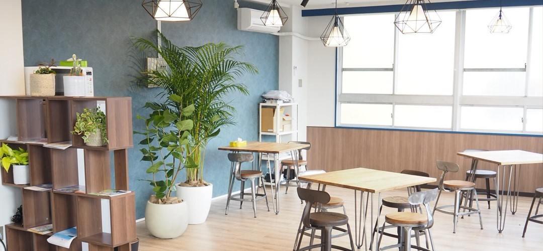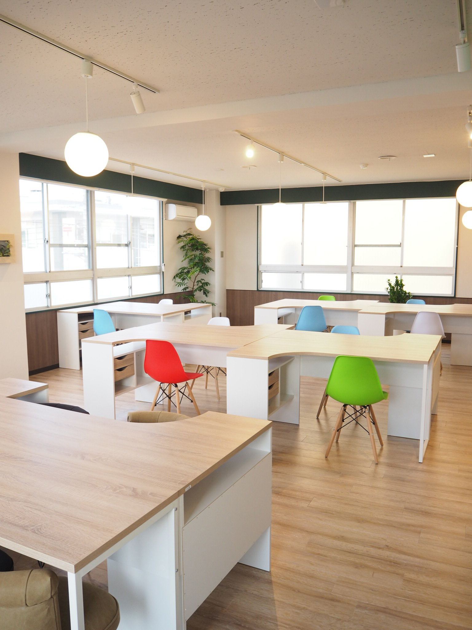 2階は逗子の象徴である海を連想させるブルーを基調としたマリンカラーで空間を構成しました。家具や照明に遊び心のあるものを選定することでカフェのような雰囲気を作り出し、非日常な空間の中で仕事ができるよう工夫しました。3階は温かみのある木調と自然を連想させるグリーンで構成しました。デスクは自由に移動させ組み合わせることで、大人数での話し合いから個人での集中作業まで、幅広い働き方に合わせられるフレキシブルな設えとしました。