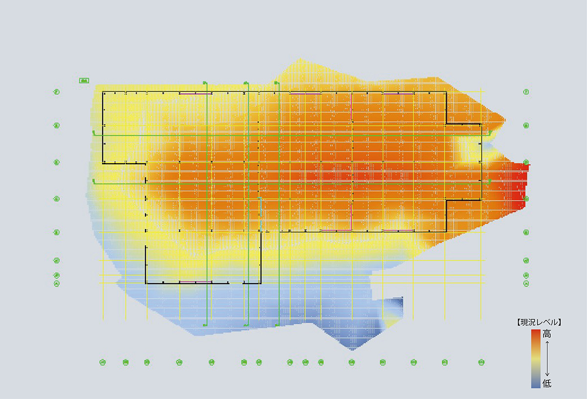 基本設計の段階から設備課・生産設計課・FL課・技術課と協議を重ねて計画をすすめました。例えば、BIM上で敷地の高低差を見える化し、腰壁防水範囲の検討や漏水リスクの共有を関係部署間ですることができました。