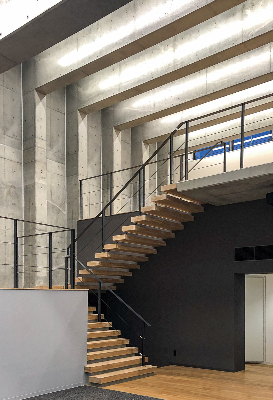 ゾーンをつなぐ浮遊感のある片持ち階段
