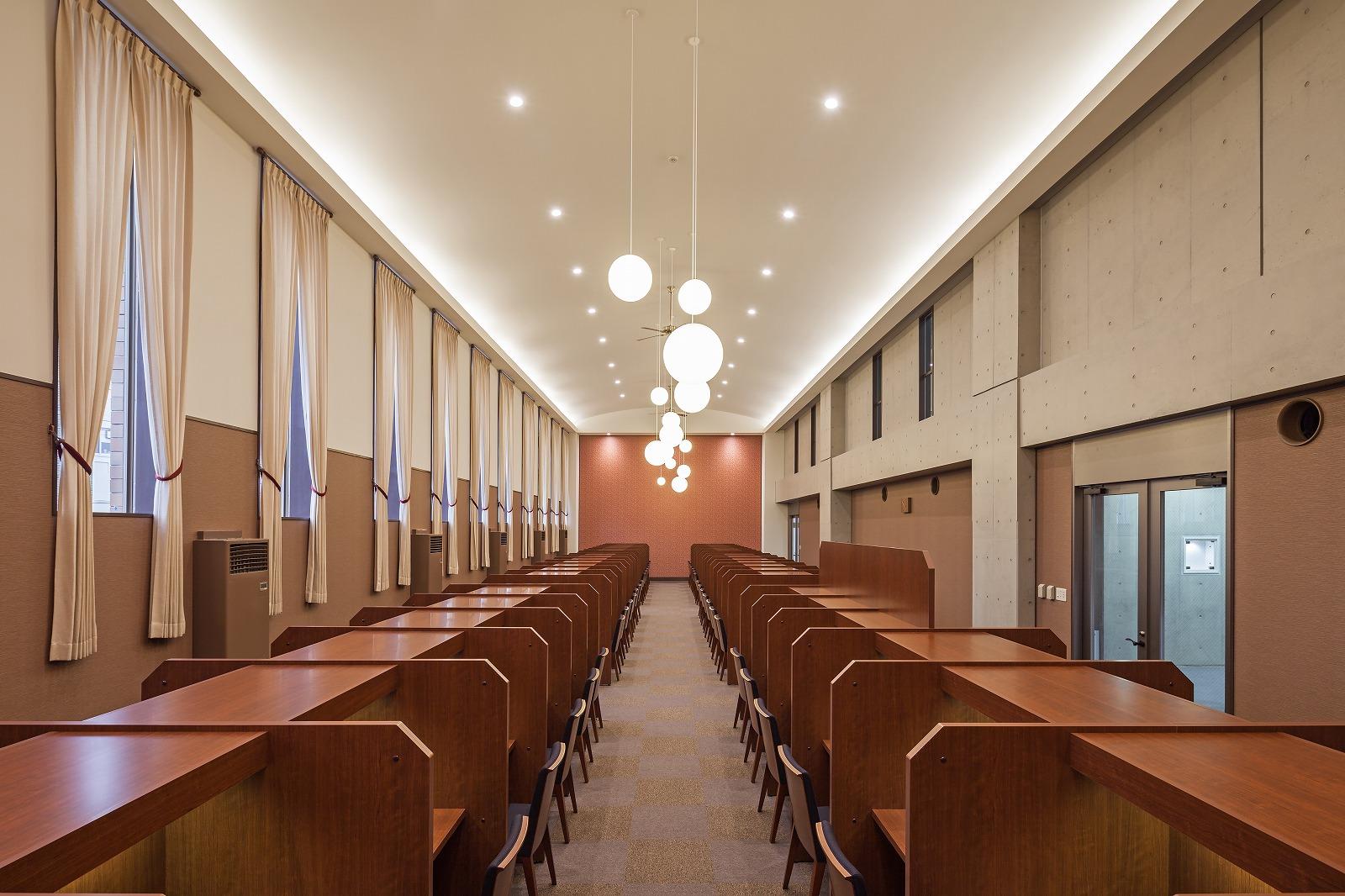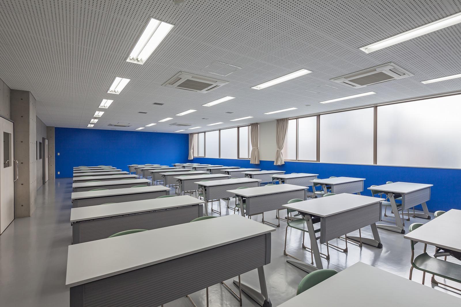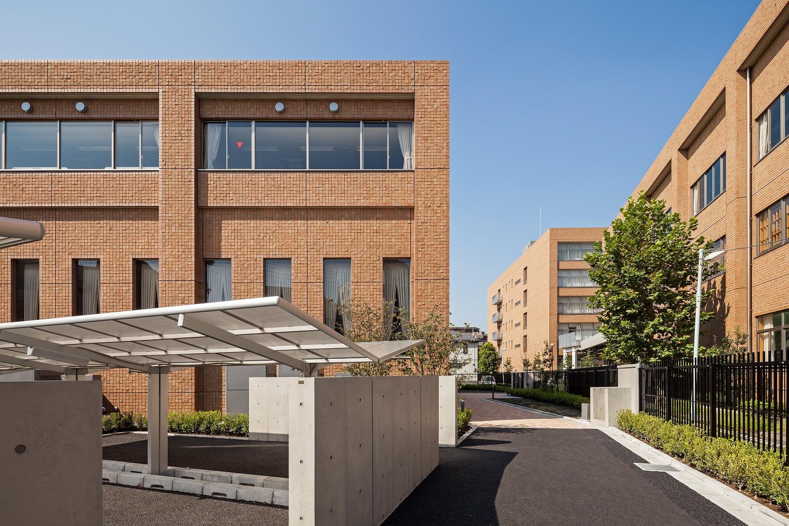 校舎棟・プログレスセンターの「文」と体育館・グラウンドの「武」を、ペデストリアンデッキを介して「一体」とし、学園の基本方針である「文武一体」をカタチとして実現しました。 校舎は中庭を計画した事で、上下階の繋がりを感じられる明るく活気あふれる空間にした。体育館は開口部を多くとり、自然光と風の流れを感じられるアリーナと柔道場・剣道場で成っている。デッキは、それら2棟とグラウンドを繋ぎ、学園を一つにまとめる役目を担う。2期計画では、隣地にプログレスセンターと名付けられた受験学習専門の校舎も建てられ、3棟で一つの学園となった計画。