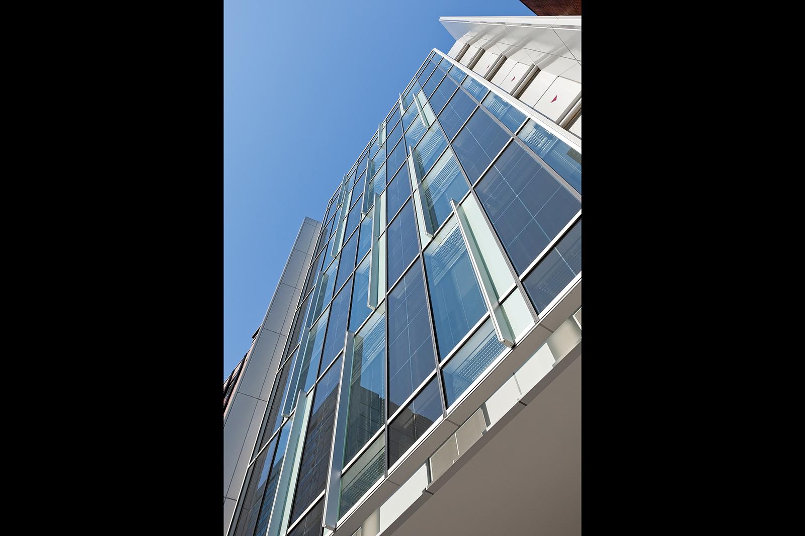 中規模テナントオフィスビルでありながらも、積極的に「環境配慮技術」を取り込むことで、高い環境性能を実現した「環境最先端テナントオフィスビル」です。 50項目の環境技術を採用し、「CO²排出量40%削減」、「CASBEE評価 Sランク(中規模テナントオフィスビルで国内初取得)」、「省エネルギー性能評価(東京都)段階3-3」の3つの環境目標を達成しています。高い環境性能を実現するためには、数多くの技術を積み重ねるだけでなく、これらの技術をコーディネートし、建築として具現化していくことが設計上の重要なポイントでありました。
