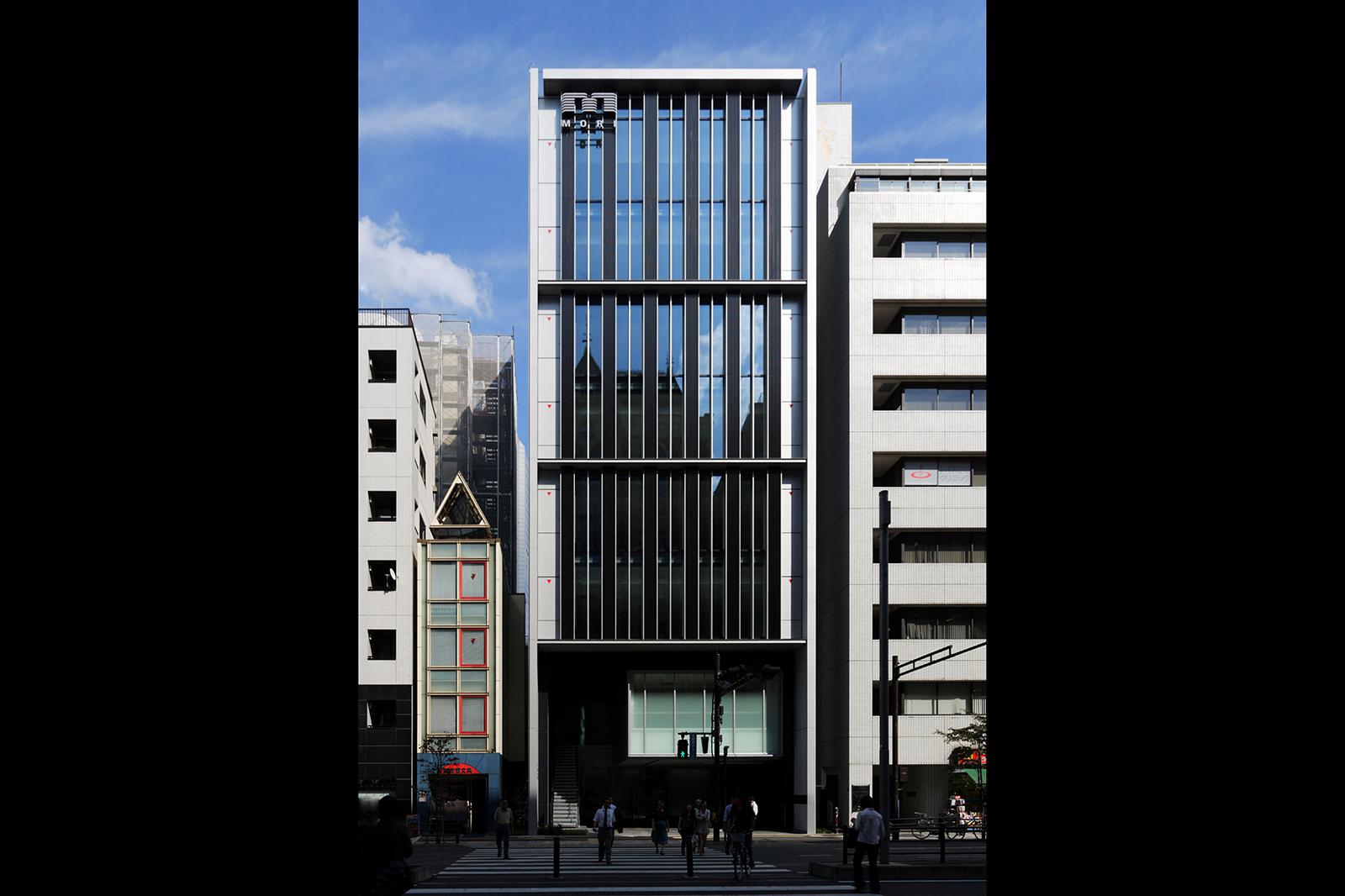 東京都港区に計画した中規模事務所ビルである。桜田通りを挟み慶應大学東門と正対する。東門の象徴的な姿を踏襲したシンプルなデザインで構成した。低層部に設置した2階の高さを持つピロティは街に奥行と広がりを作り出す。建物には素材を活かした内外装の材料を採用し、内部では素材を照らすことで空間を演出し来訪者を導く。