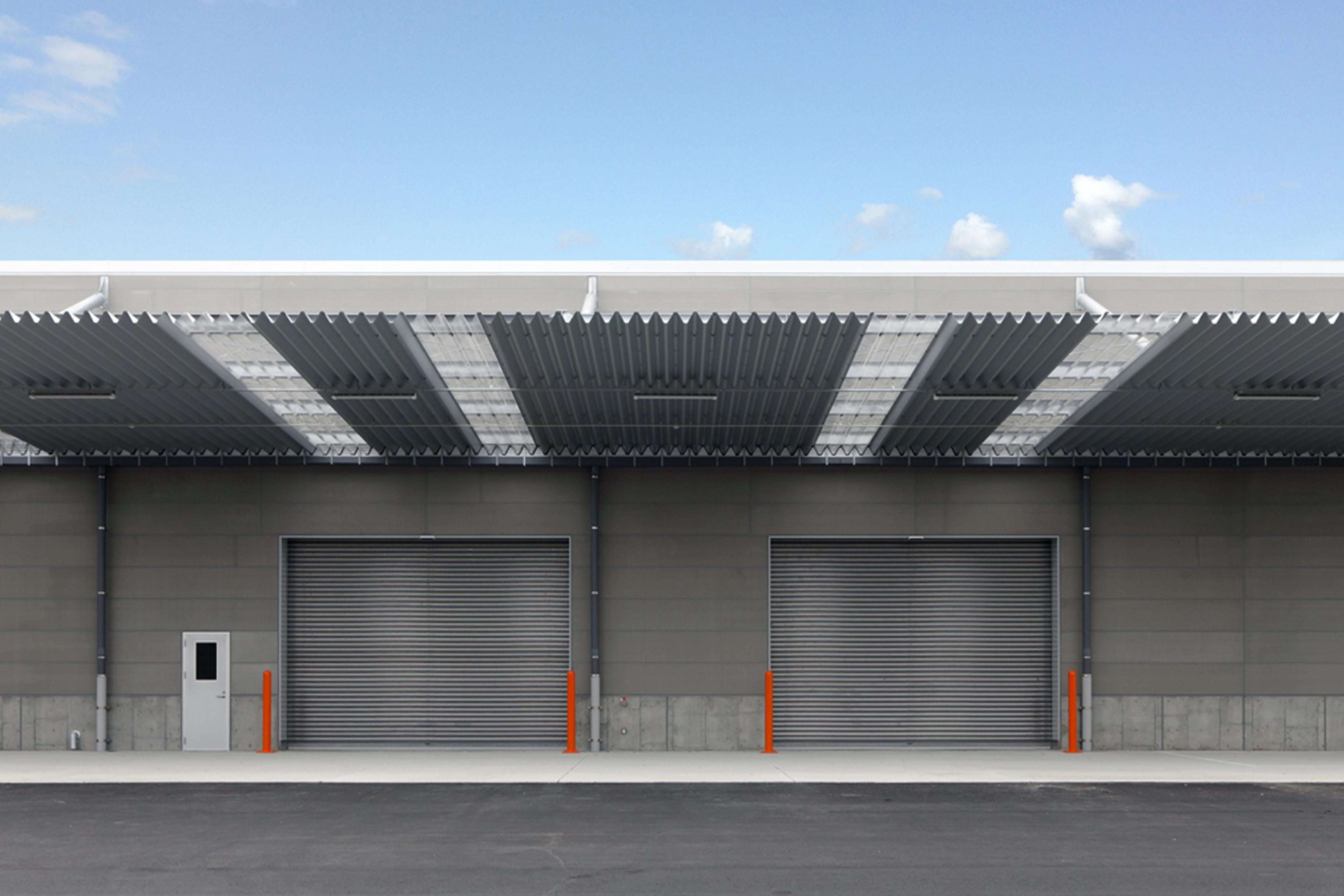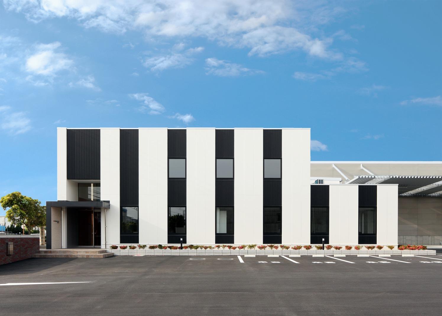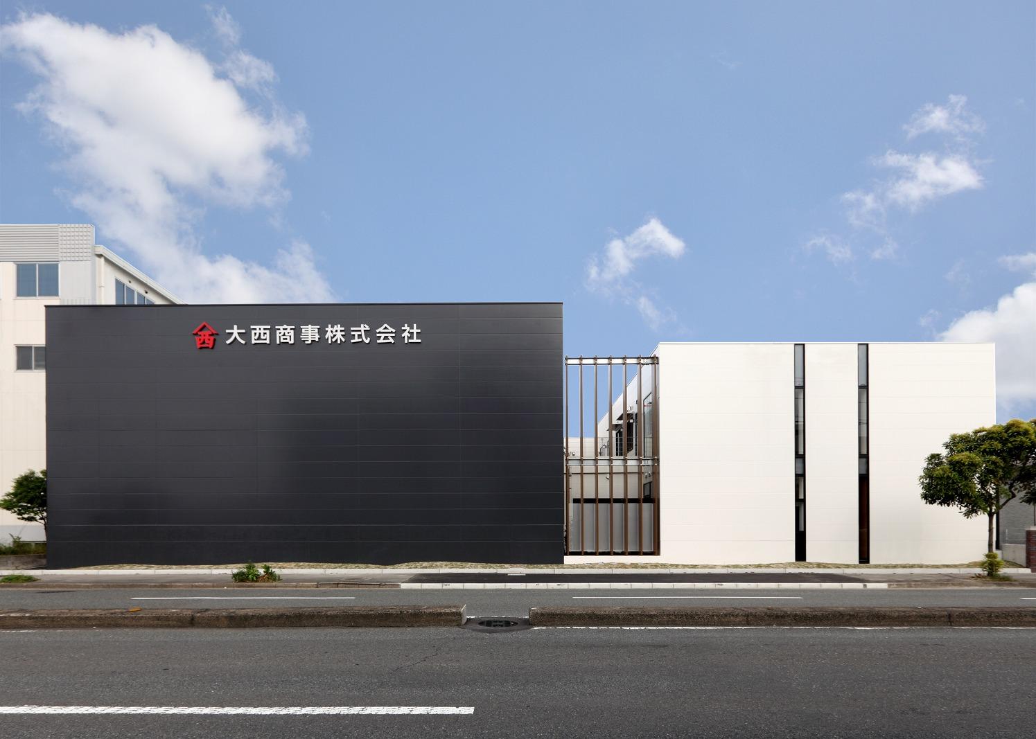 大西商事株式会社は砂糖や小麦粉などの粉物を中心として取り扱う、明治20年創業の老舗企業です。建物は倉庫エリアと事務所エリアで構成しています。食を扱う倉庫エリアは、確かな品質を確保することは勿論、将来転用などを視野に入れ一類倉庫の基準を満たした仕様としました。事務所エリアには食堂やデッキテラス、坪庭などを設け、埠頭で働く従業員に快適な場を設けています。一見閉鎖的に見える表情は西日対策と防犯性向上を図ったもので、異なる用途、ボリュームに彩度の対比を持たせたシンプルなデザインとしました。アメニティとして外部空間を取り込んだ建築は、機能優先で構成された埠頭エリアにおいて、異彩を放っています。