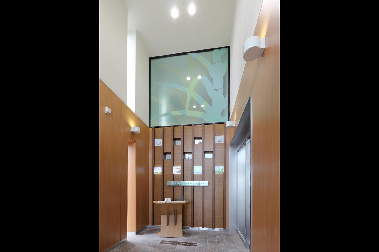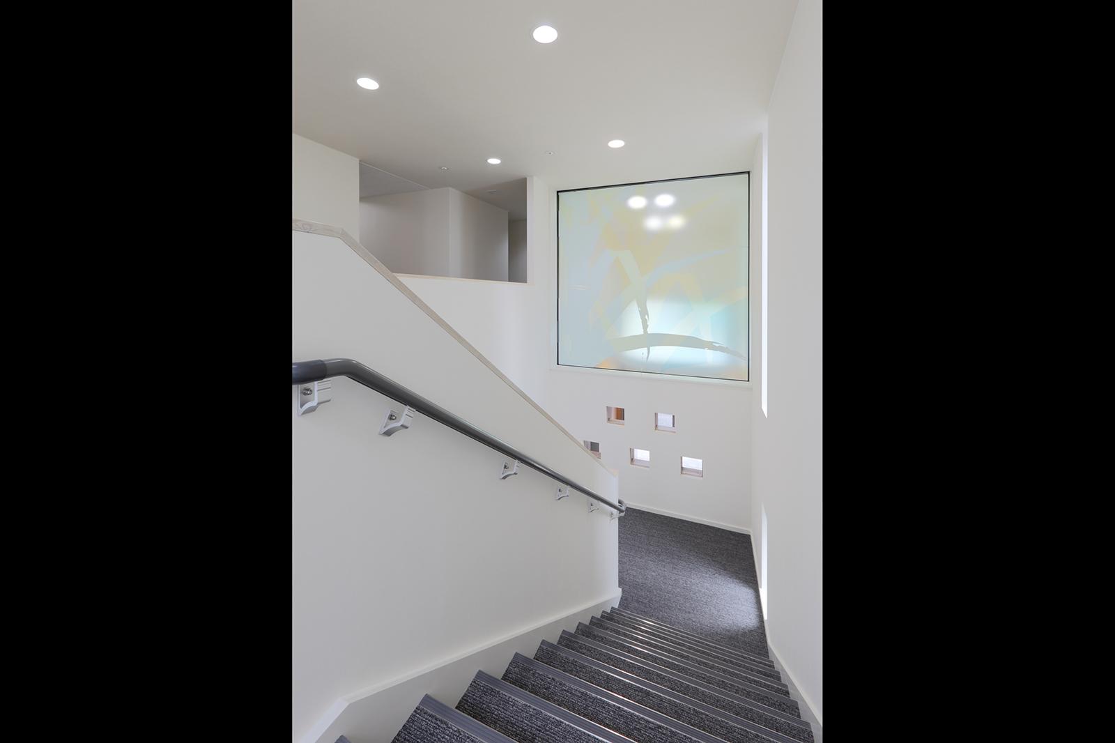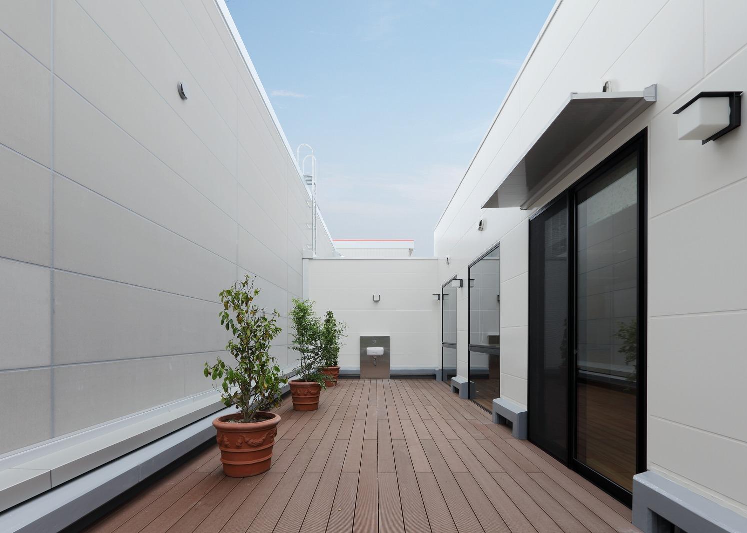 大西商事株式会社は砂糖や小麦粉などの粉物を中心として取り扱う、明治20年創業の老舗企業です。建物は倉庫エリアと事務所エリアで構成しています。食を扱う倉庫エリアは、確かな品質を確保することは勿論、将来転用などを視野に入れ一類倉庫の基準を満たした仕様としました。事務所エリアには食堂やデッキテラス、坪庭などを設け、埠頭で働く従業員に快適な場を設けています。一見閉鎖的に見える表情は西日対策と防犯性向上を図ったもので、異なる用途、ボリュームに彩度の対比を持たせたシンプルなデザインとしました。アメニティとして外部空間を取り込んだ建築は、機能優先で構成された埠頭エリアにおいて、異彩を放っています。