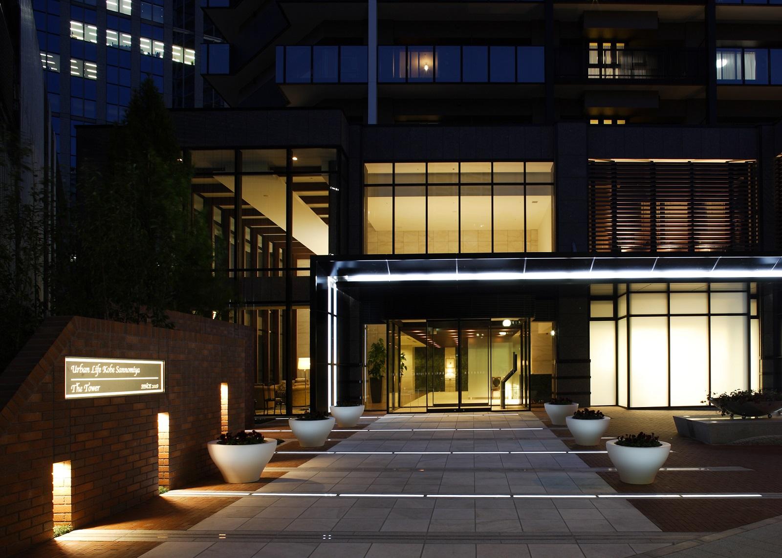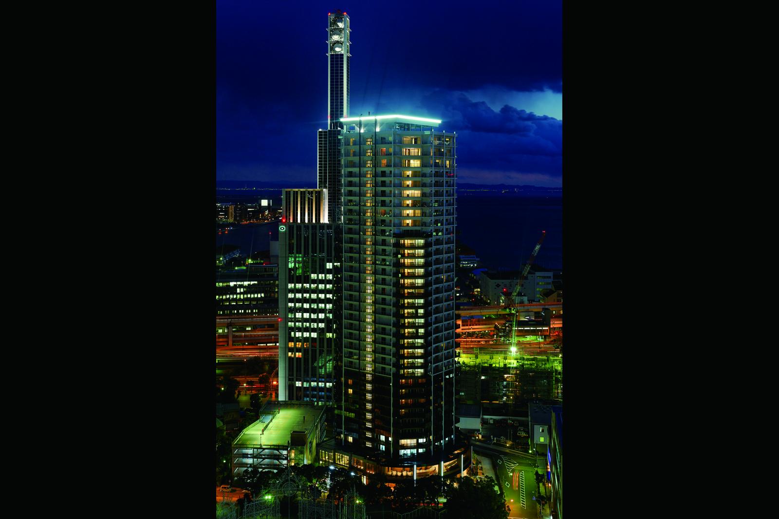 本計画敷地は、ミノルヤマサキ設計のアメリカ領事館跡地であり、旧居留地に近接する、神戸独特のまちなみが残る歴史的な地区に位置する。また、阪神・淡路大震災の追憶行事ルミナリエや1.17の集いの会場となる東遊園地があり、強い思いが集まる場所である。この様な地域で、まちなみ形成への寄与・地球環境への配慮(CASBEE Aランク取得)はもとより、神戸市の花であるペチュニアの花言葉「ピースオブマインド」をコンセプトに、“安心で心が和む”建物を目指した。 外観は正面性を持たず、存在感を放つ灯りのタワーデザインで加納町のランドマークを形成し、レンガ調タイルの外壁や外構部の間接照明により周辺環境との調和を図る計画としている。