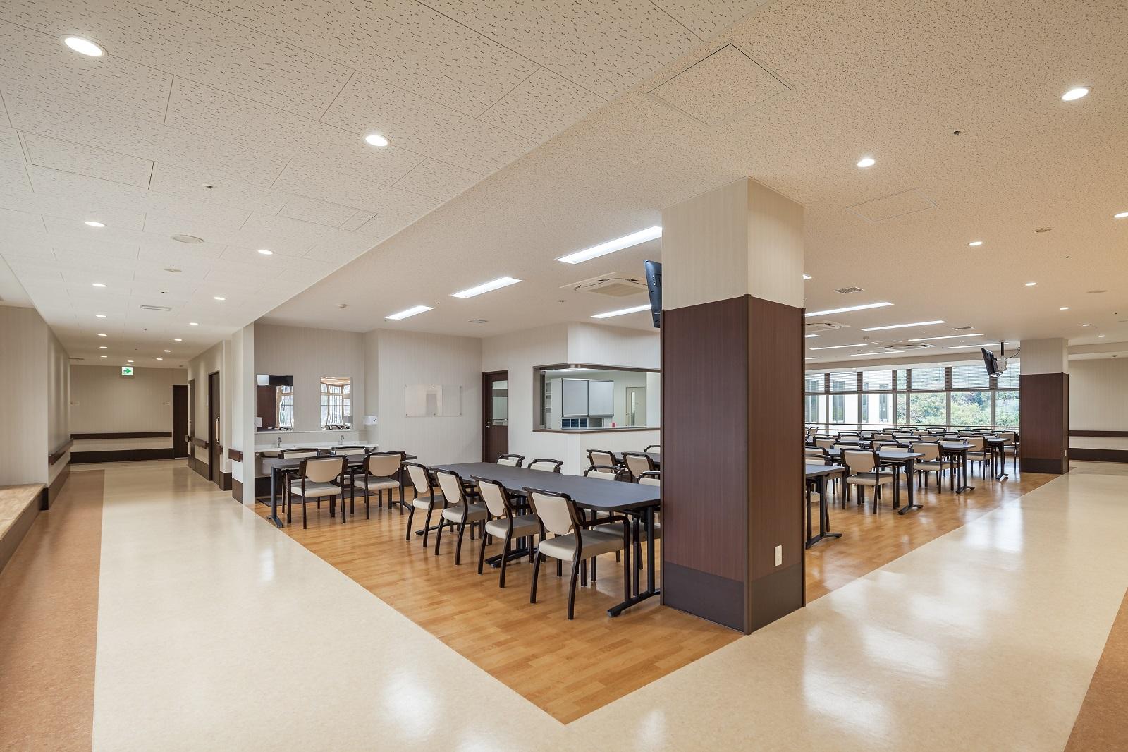 本計画地に新棟166床+既存棟109床、菊池有働病院に195床を持つ、熊本県の精神科医療の中枢を担う施設である。 1フロアに4つのユニットを配置し、性別や重症度による使い分けと機能分化により、ユニットの独立化を可能としている。また、国の重視する「入院医療の短縮化、訪問支援の充実、認知症患者の早期退院」を見据え、4床室は将来の個室化を想定したモジュールとした。 病棟の中心には全ての患者が集まることのできるデイルームを配置し、大きく開かれた開口からは荒尾を代表する景色である有明海と万田山、そして、春の訪れを伝える桜並木を望むことができる。これらの風景が症状改善の一役を担ってくれることを信じている。