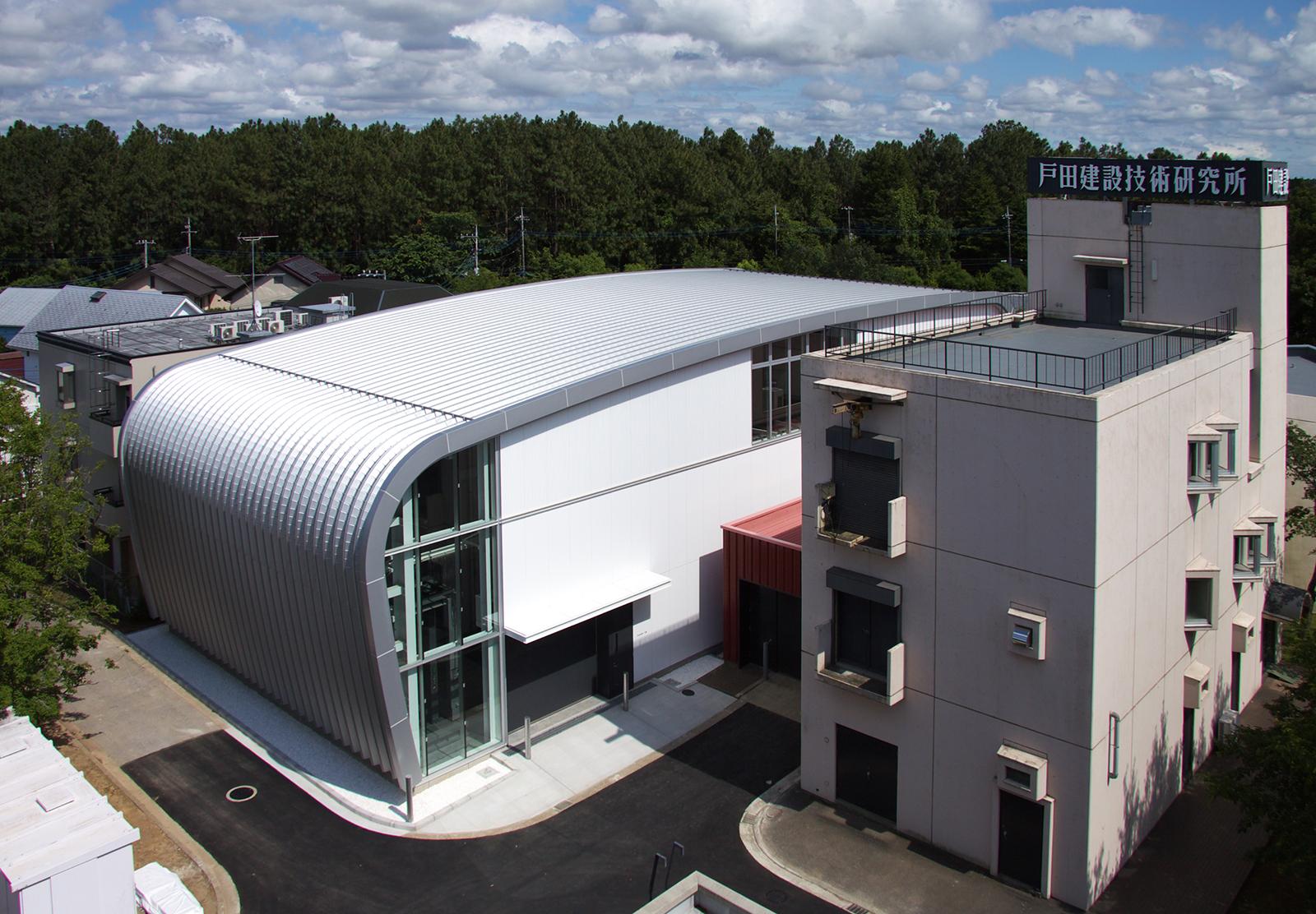 戸田建設の創立130周年を機に行われた筑波技術研究所施設整備計画のメイン施設。筑波技術研究所の豊かな緑の中で、新しい顔となる研究施設、次世代への新たな研究に向けた施設を、曲線的なフォルムのデザインで、既設施設に新たな息吹をもたらし、技術力を高めることを意図している。