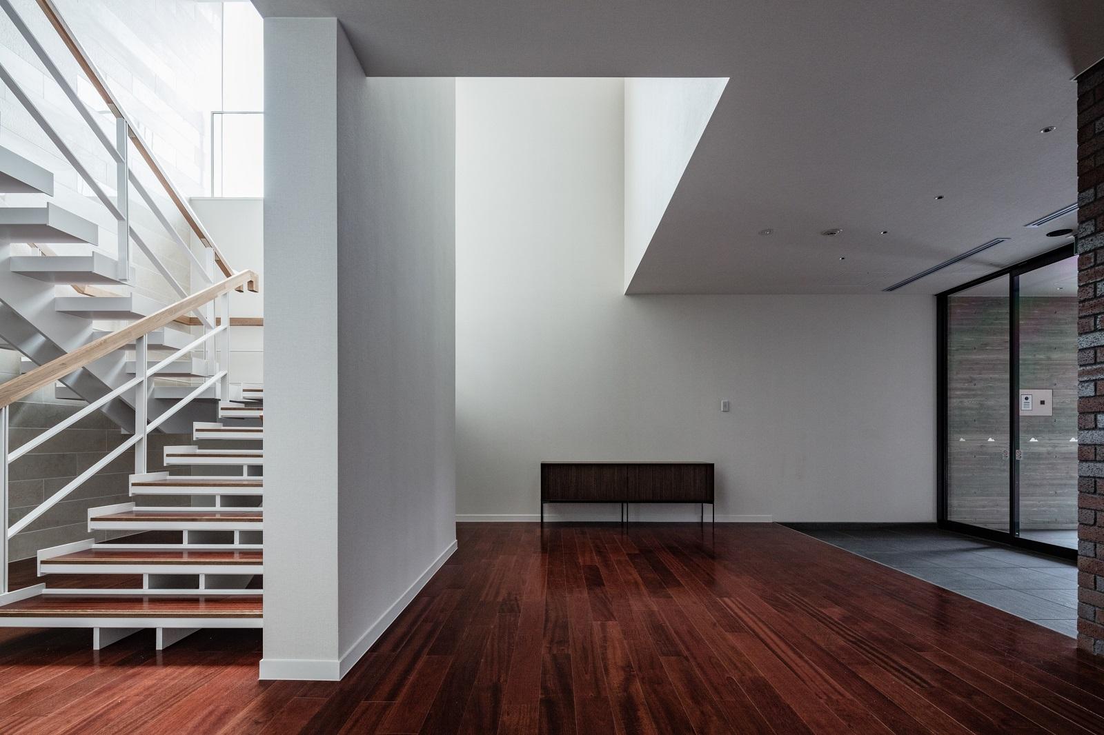 その為に、2階ダイニング空間とラウンジ空間を大きなワンルームとし、地盤面から持ち上げることで、プライベート感を担保した開放的な"集う"空間を構築した。