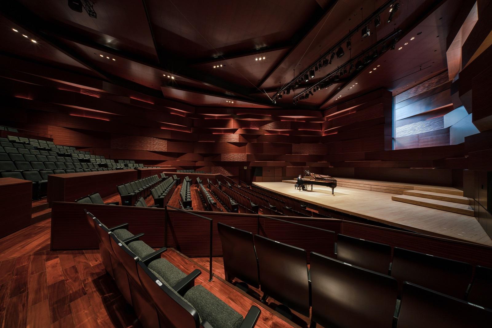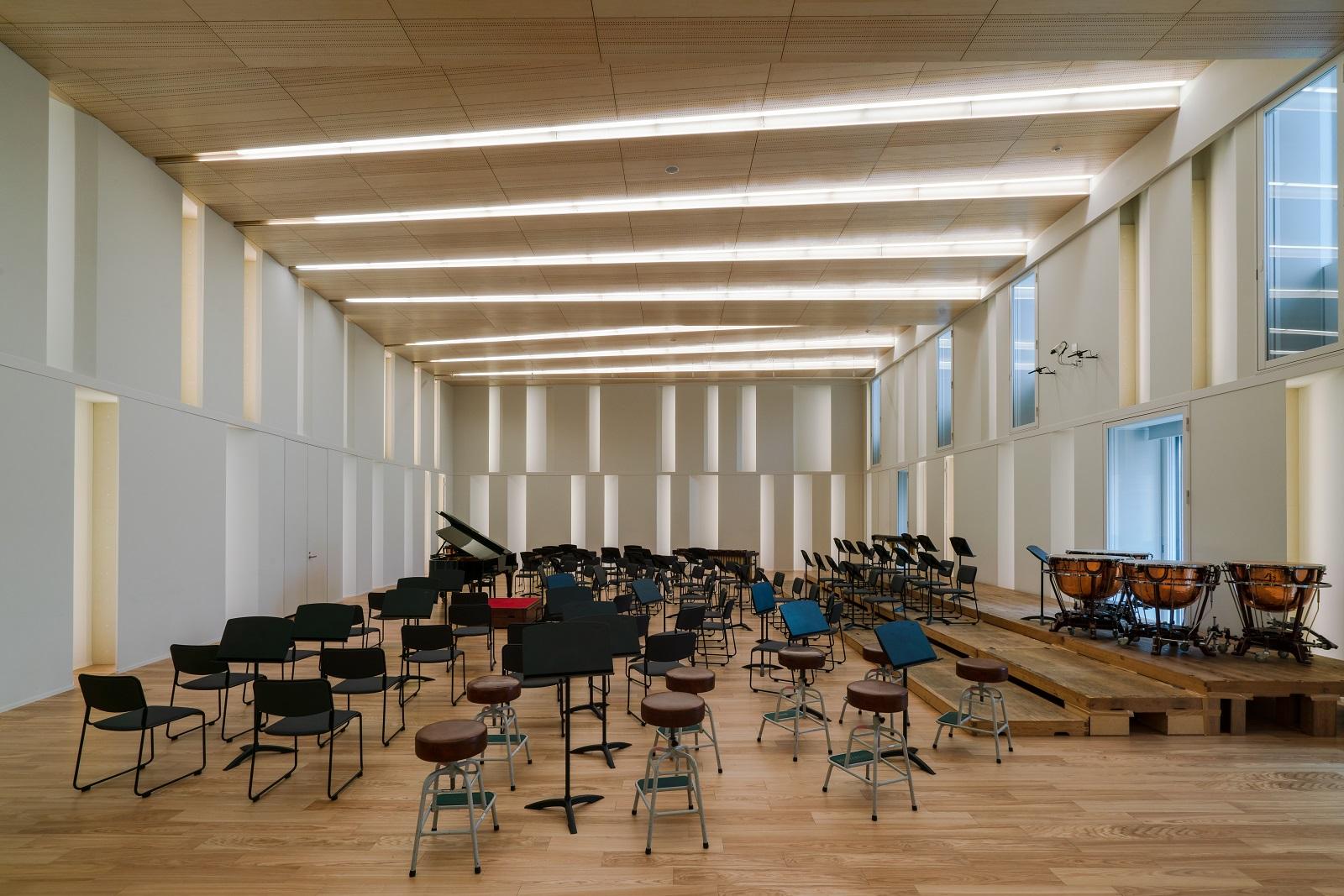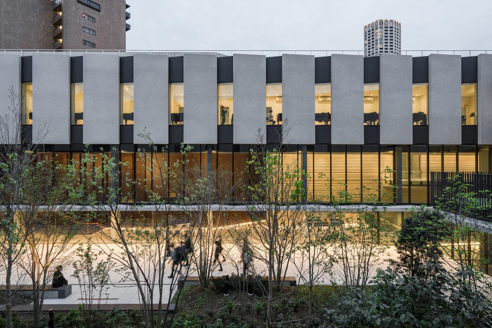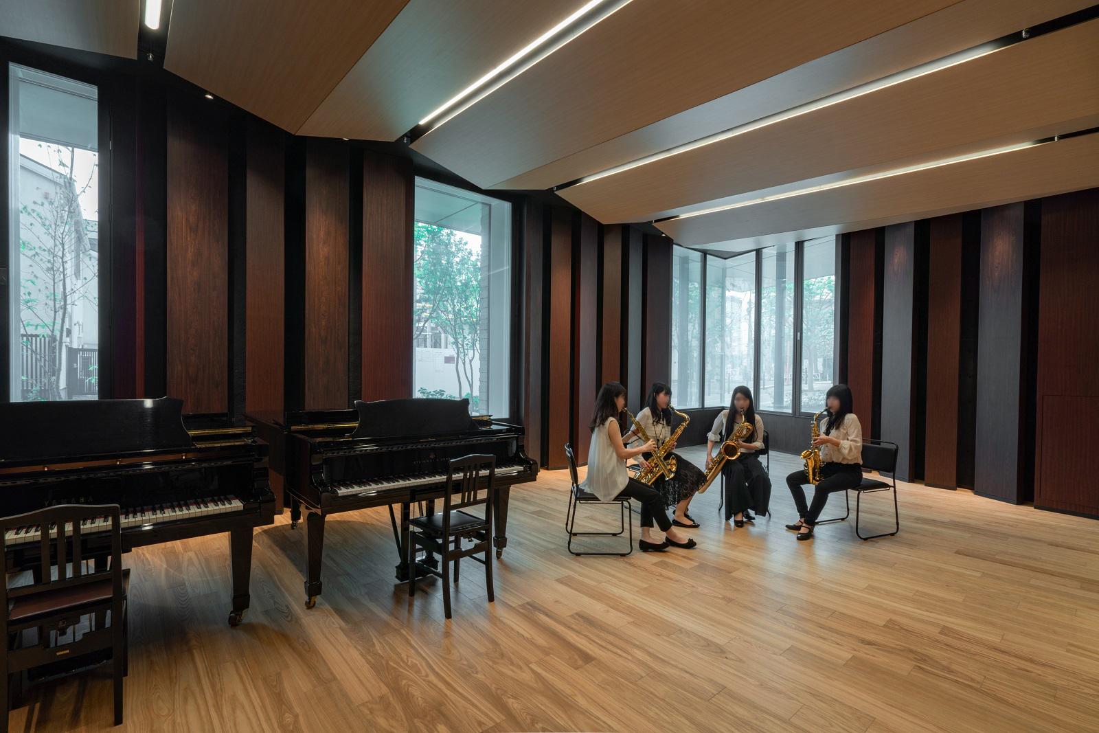 東京音楽大学は「110年の伝統を次の世代に引き継ぐ新たな教育の場」として、中目黒・代官山の地に新キャンパスの計画を立ち上げた。そして”広く社会に貢献する人材を育成し、未来を担う子供たちに音楽の魅力を伝え、日本の新たな音楽文化創造のための挑戦をする”という強い意志によりこのキャンパスが実現した。キャンパスの中心を貫き自由に通行できる「音楽のみち」は、中目黒と代官山をつなぎ、「学生」と「まち・社会」との接点となり、様々な交流や多様な体験の場として計画されている。またその中心にある”音楽の森”と呼ぶ緑豊かな中庭を囲むように、レッスン室・練習室・教室・カフェテリア・音楽ホール等を配置し、「学びの場」と「外部空間」を緩やかにつなげ、森の中を回遊するような心地よさと共に、感性を触発し、音楽に向き合い、音楽を学ぶ最高の環境づくりを行った。当キャンパスは多くのレッスン室や練習室及び大中小様々な教室、レコーディングスタジオ、音楽ホールで構成されているが、一つ一つ音響空間としての完成度を最大に高め、様々なものを重ね、つなぎ、そして共鳴させることで音をデザインに昇華させている。