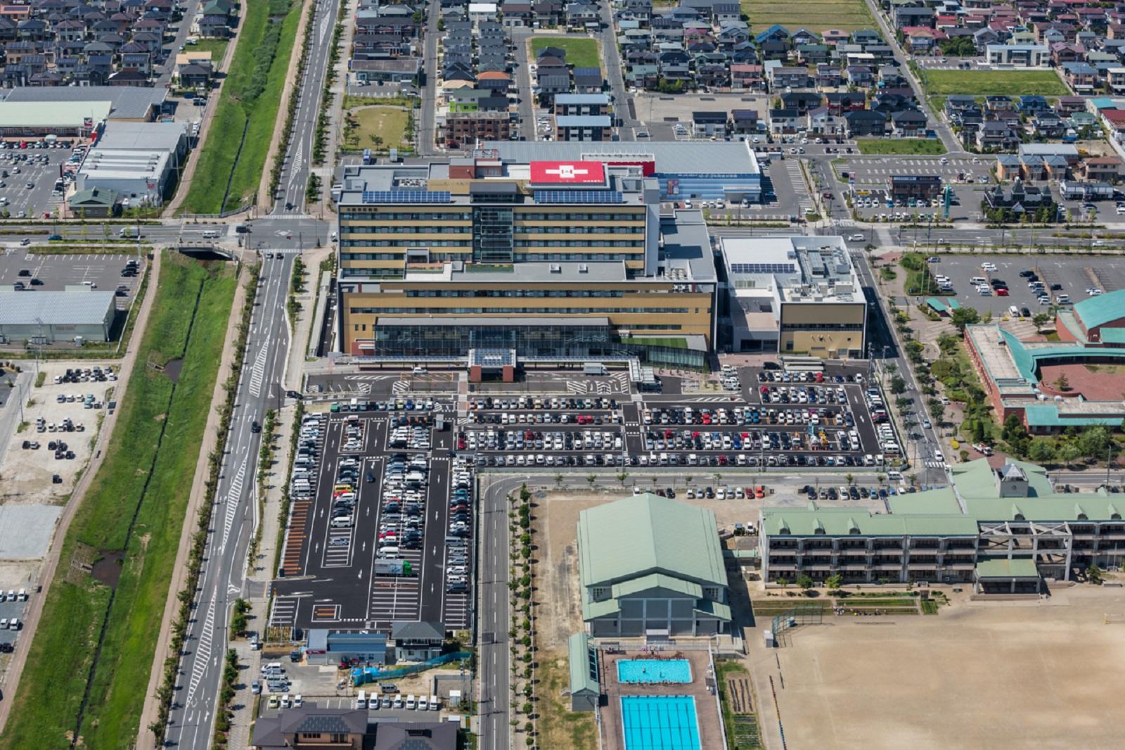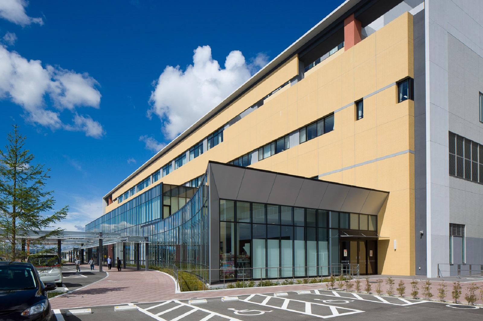 ぬくもりを感じられる病院を-との客先要望に対して、東北特有の曇天にも映え、陽だまりを感じさせる暖かな茜色をファサードに持たせた。DB方式でありながら、当社の目指す機動力の高い病院造りを実現すると共に、患者を元気づける為の配慮を随所に織り込む計画とした。