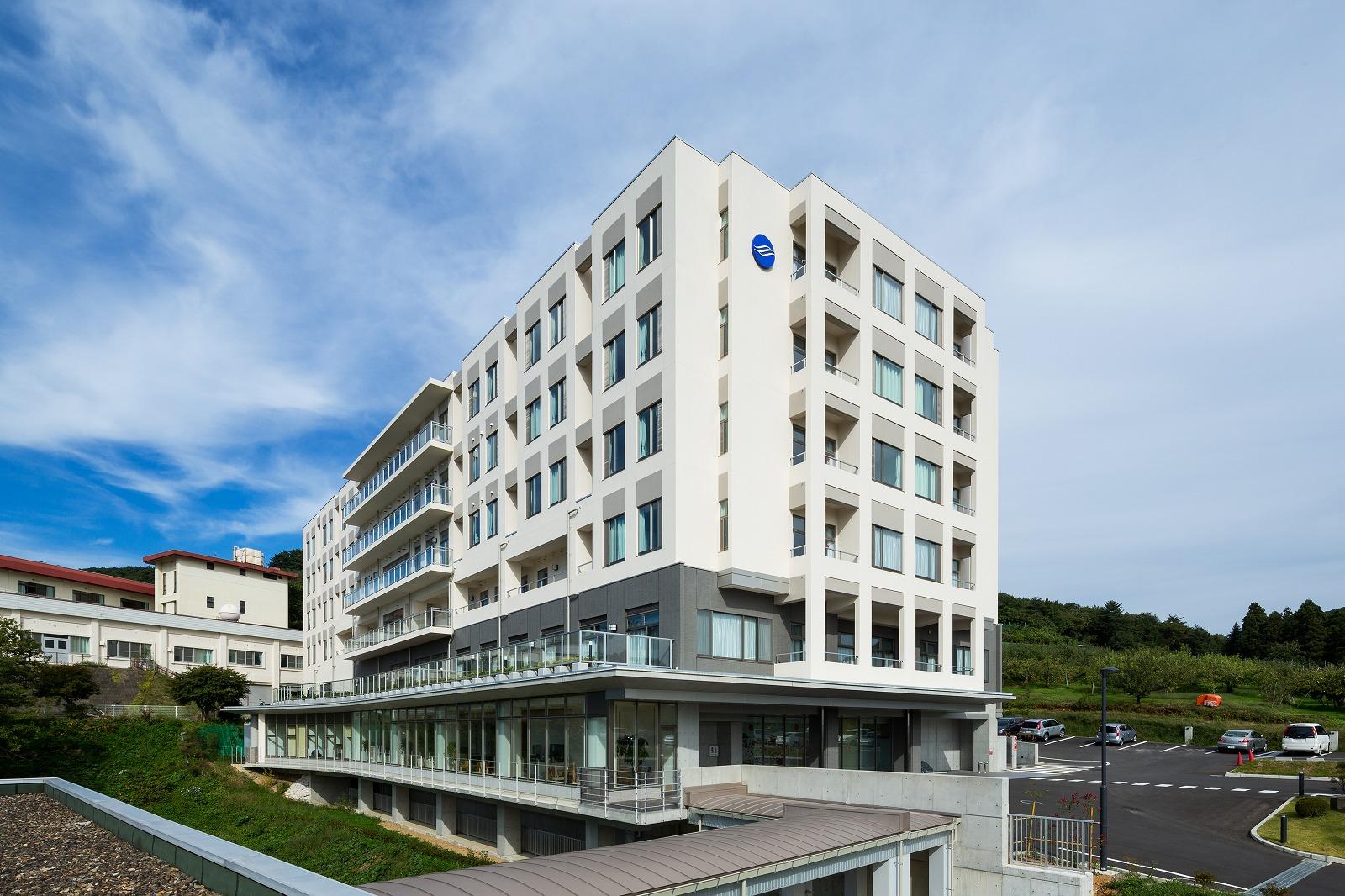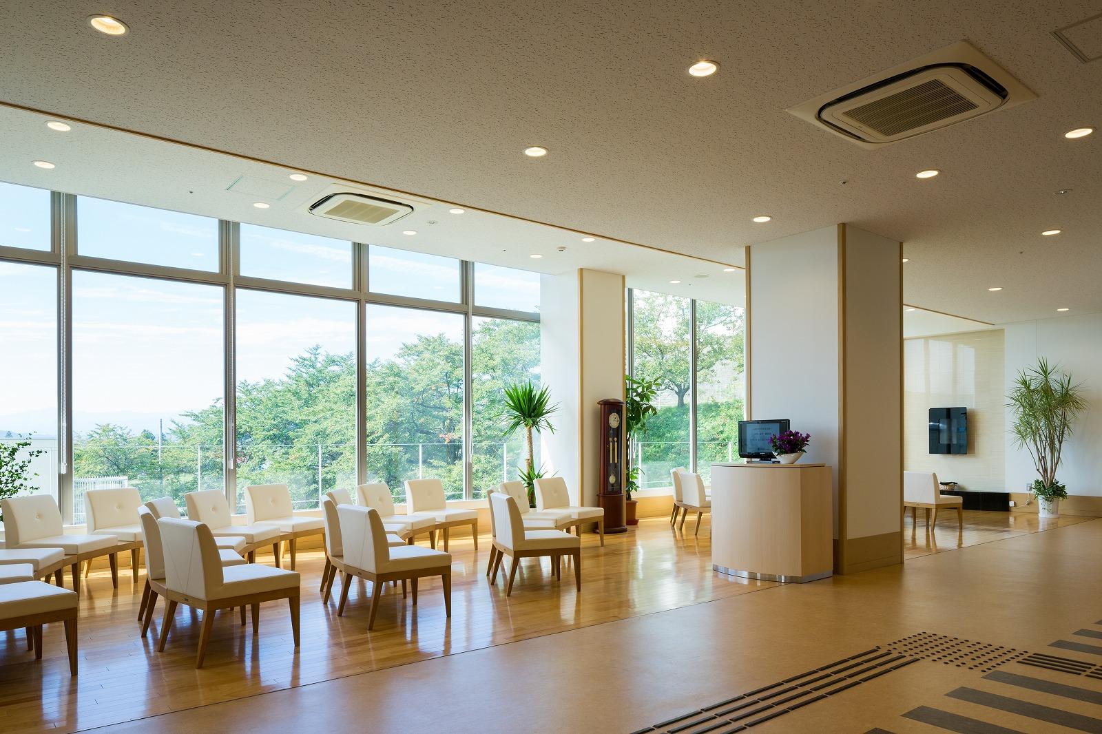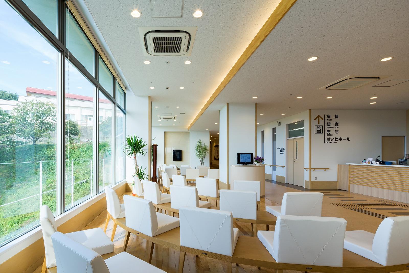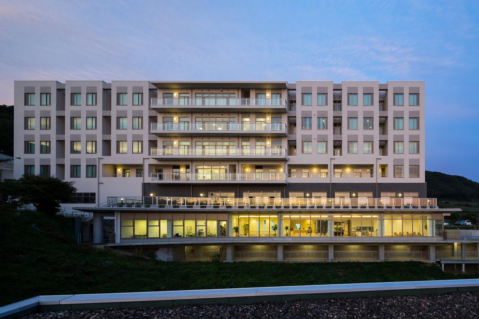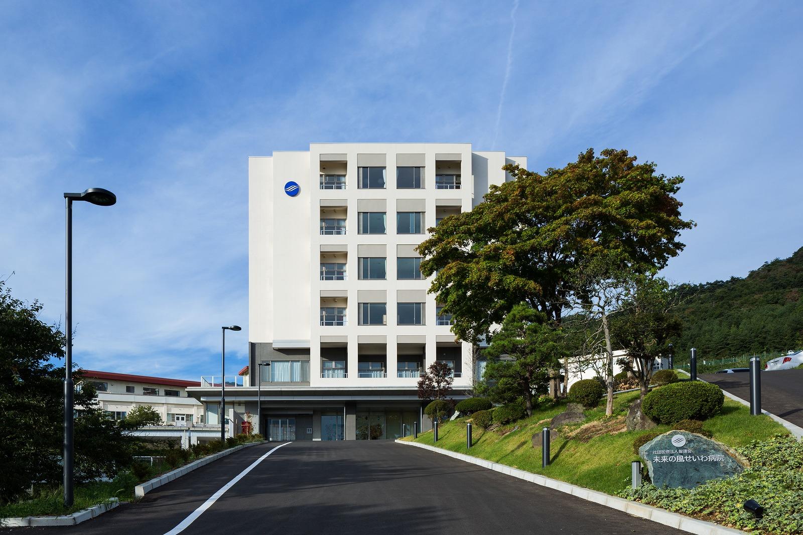 計画地は岩手県盛岡市郊外の丘陵にあり、東にリンゴ園、西に北上川と奥羽山脈の連なり、さらに遠くには岩手山を望み、四季の移ろいが感じられ、山の稜線に沈む夕陽が美しい場所です。 外来ゾーンや病棟において、眺望を始め、光や風といった自然を享受できる施設を目指しています。 また地域の精神医療において中心的な役割を担ってきた病院として様々な疾患に対応できるよう、急性期(竣工後、救急病棟に一部改修)・ストレスケア・合併症・認知症等、疾患別の病棟構成と治療段階別のゾーニング(急性期病棟においてはスタッフステーションに直結した観察室、PICU(保護室)、閉鎖ゾーン、開放ゾーン)を行った計画としています。